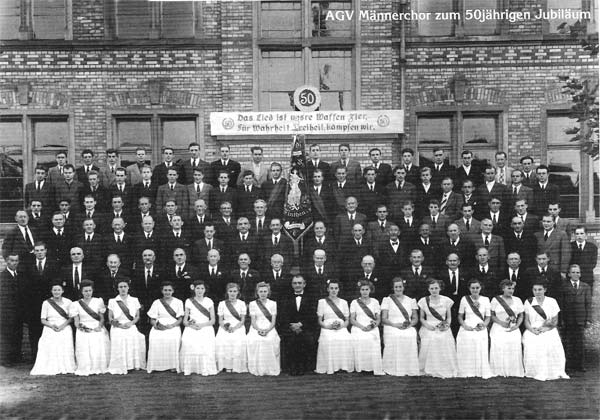 Kontakt zu Sängervereinen in Arnstadt und Erfurt Leider mußte im Jahre 1951 der langjährige Vorsitzende Philipp Jakob Veit sein Amt krankheitshalber zur Verfügung stellen und wurde in Anbetracht seiner großen Verdienste zum Ehrenpräsidenten gewählt. Ab 1953 trat wie in fast allen Gesangvereinen leider ein Rückgang der Sängerzahl in Erscheinung und stellte die Verantwortlichen unseres Vereines unter dem damaligen Vorsitzenden Jakob Rehm vor schwierige Aufgaben. Im Rahmen des damaligen Kulturaustausches nahm unser Verein im Juli 1953 erstmals offizielle Verbindung mit den Sängerinnen und Sängern aus Arnstadt und Erfurt in der damaligen Deutschen Demokratischen Republik auf. Gegenseitige Besuche sowie die schönen erlebnisreichen Wartburgtreffen und nicht zuletzt gemeinsame Konzerte vertieften und festigten manche Freundschaften, die zum Teil noch Jahrzehnte Bestand hatten. Einen traurigen Abschluß nahm das Jahr 1953 mit dem Ableben des geschätzten